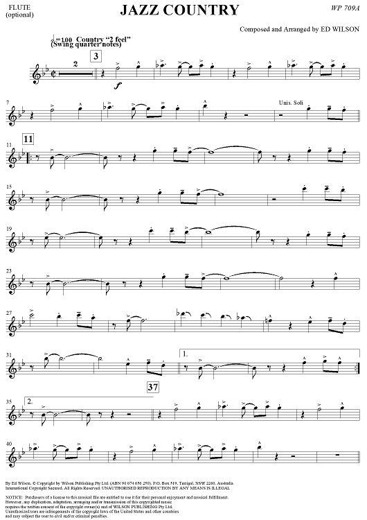 "Jazz Country - Flute" Sheet Music by Ed Wilson