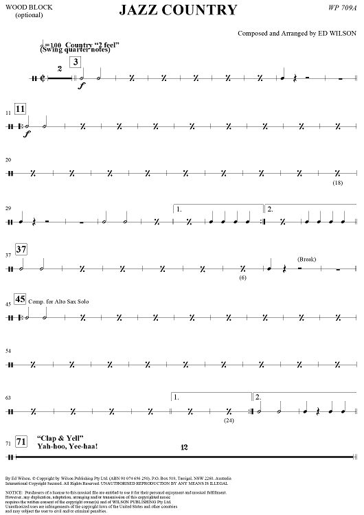 "Jazz Country - Wood Block" Sheet Music by Ed Wilson