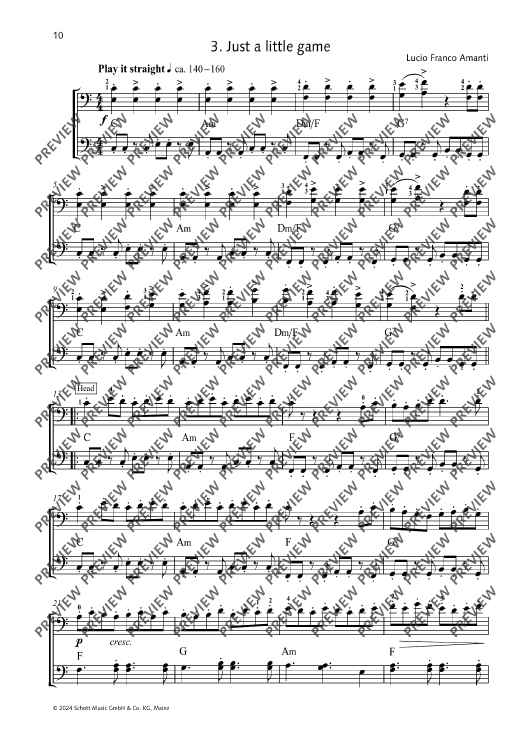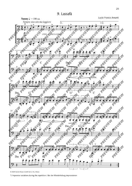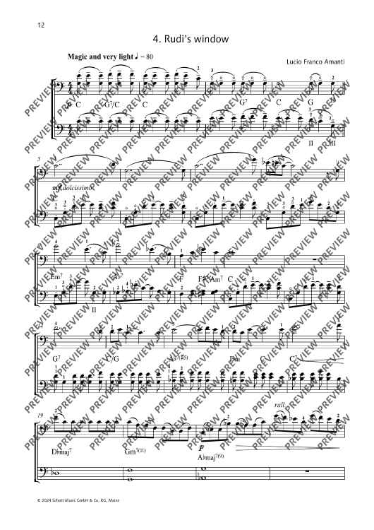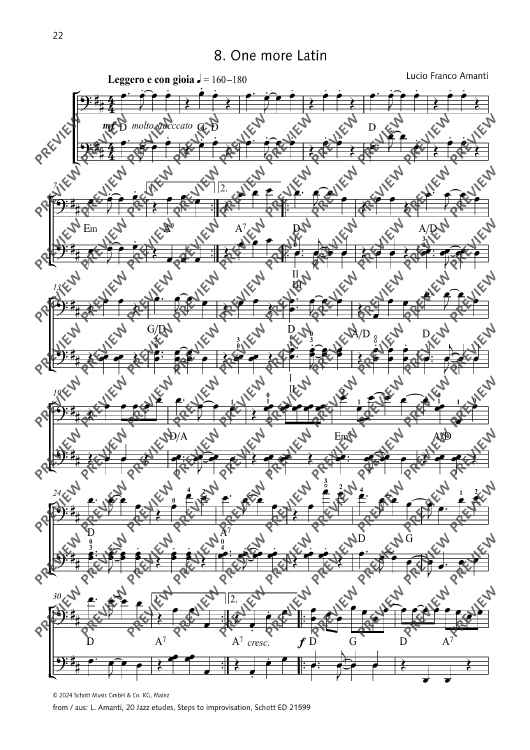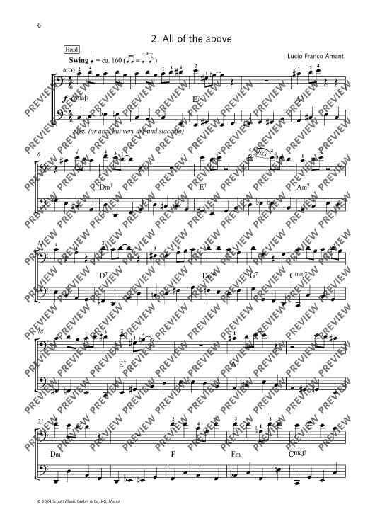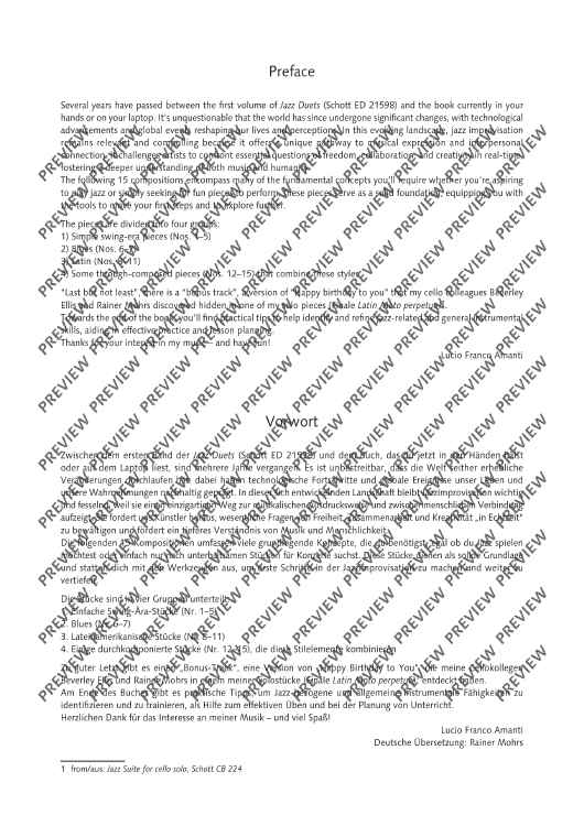 Since the publication of his „Jazz Suite für Cello“ (Schott CB 224), the Italian cellist and composer Lucio Amanti has been more than an insider tip. His „Jazz Duets“ are popular in lessons and are aimed at all those who want to play jazzy pieces on the cello and are looking for fresh repertoire. The book contains popular forms such as blues, Latin, swing or ballad and uses many modern playing techniques: swinging and grooving strokes, slides, syncopation, ternary playing and much more. All pieces are also suitable for improvisation. While volume 1 contains easy pieces in the 1st position, now playing in all neck positions and a good bowing technique is required. Let’s groove!