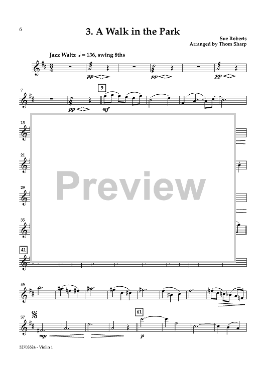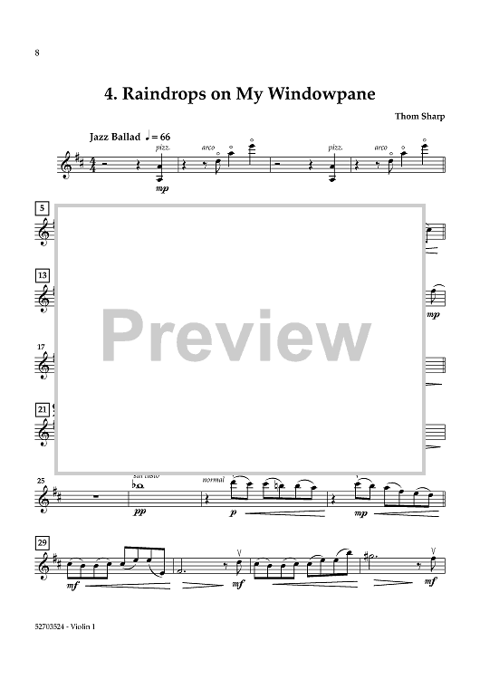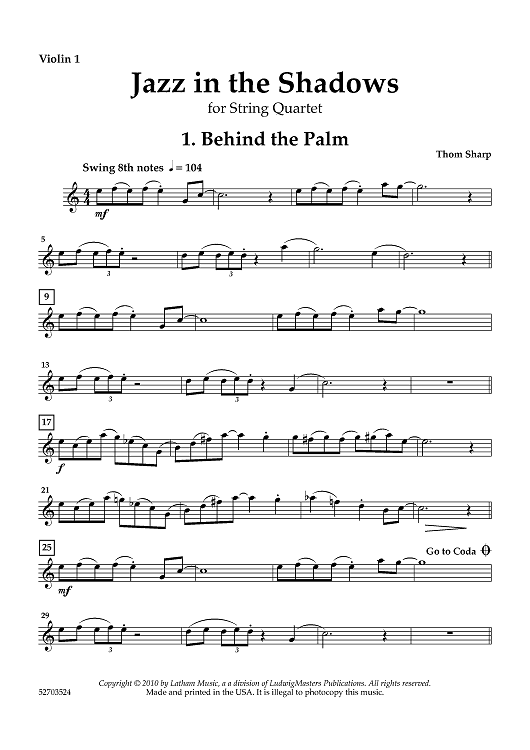 Digital Sheet Music for Jazz in the Shadows - Violin 1 by Thom Sharp, Sue Roberts scored for String Quartet; id:464161