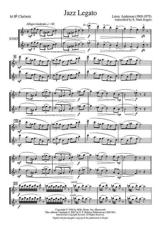 "Jazz Legato - Bb Clarinet 1" Sheet Music by Leroy Anderson