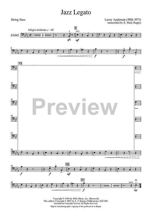 "Jazz Legato - String Bass" Sheet Music by Leroy Anderson
