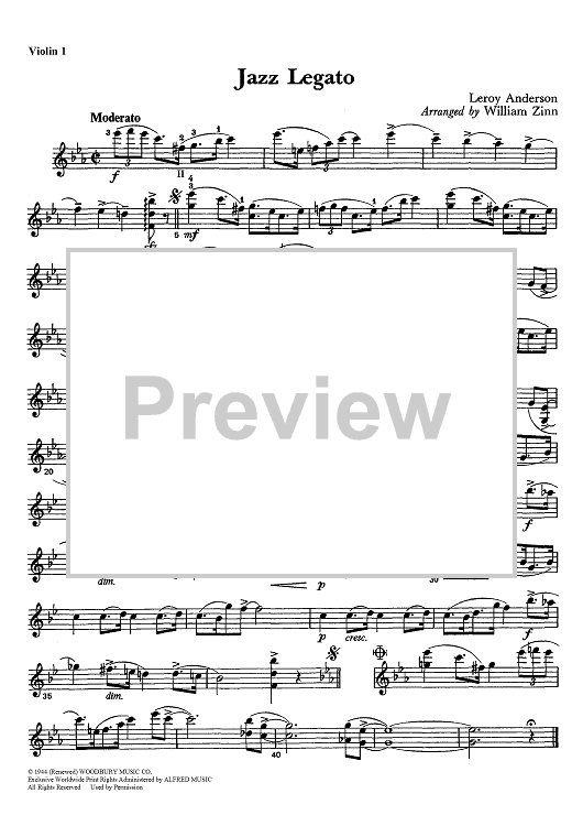 "Jazz Legato - Violin 1" Sheet Music by Leroy Anderson
