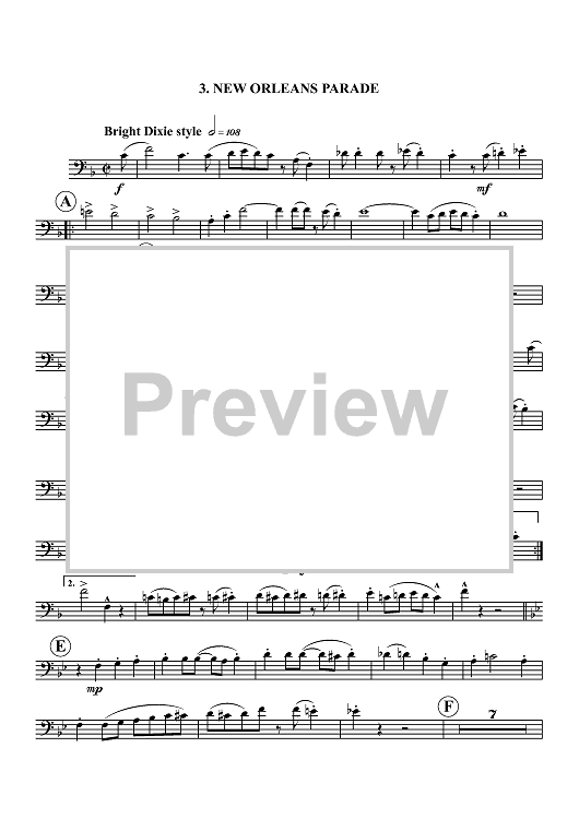 Digital Sheet Music for Jazz Suite - Euphonium 1 BC/TC by Lewis J. Buckley scored for Tuba Quartet; id:415956