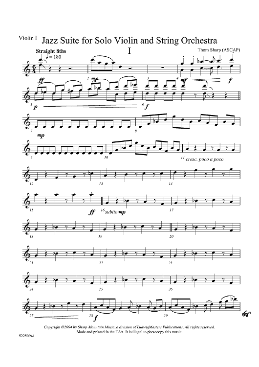 Digital Sheet Music for Jazz Suite for Solo Violin, String Orchestra, and Rhythm - Violin 1 by , Thom Sharp scored for String Orchestra; id:460812