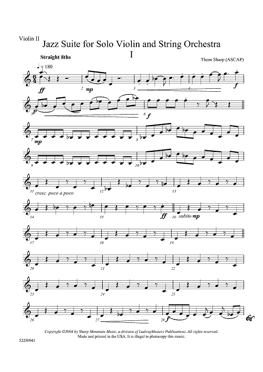 Digital Sheet Music for Jazz Suite for Solo Violin, String Orchestra, and Rhythm - Violin 2 by , Thom Sharp scored for String Orchestra; id:460813