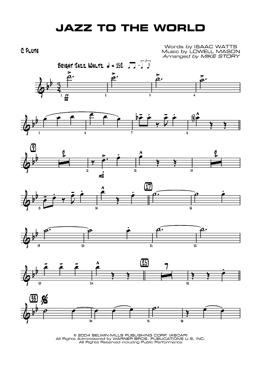Digital Sheet Music for Jazz to the World - C Flute by Isaac Watts, Lowell Mason, Mike Story scored for Jazz Ensemble; id:358667
