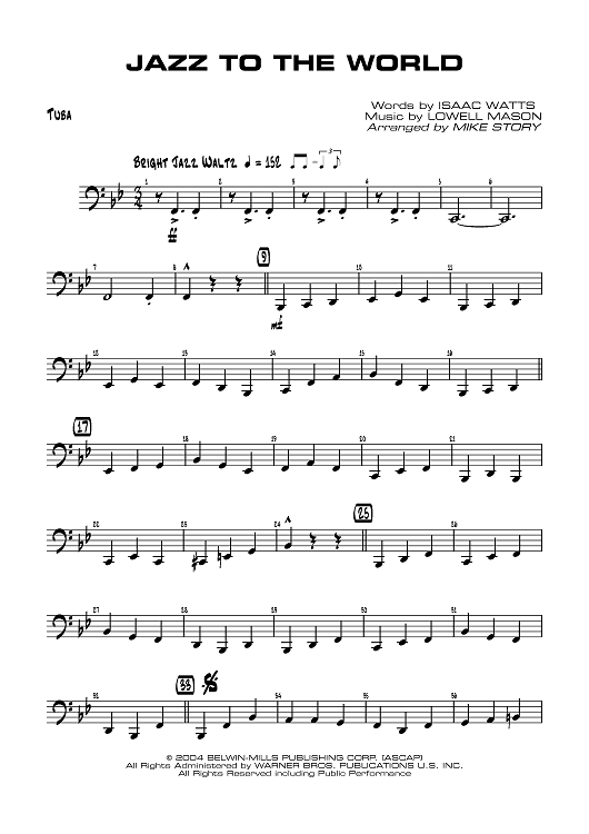 Digital Sheet Music for Jazz to the World - Tuba by Isaac Watts, Lowell Mason, Mike Story scored for Jazz Ensemble; id:358681