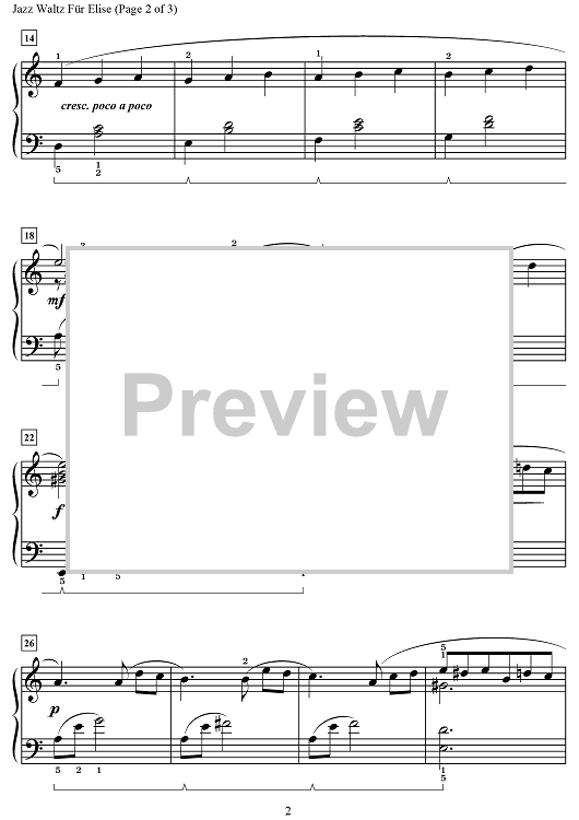 Digital Sheet Music for Jazz Waltz für Elise by Wynn-Anne Rossi scored for Piano; id:469549