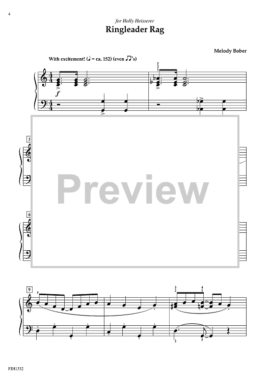 Students will enjoy playing these clever ragtime pieces. Imaginative compositions offer great opportunities for practicing right-hand and left-hand melody and cross-hand arpeggios. Melody Bober gives ragtime lovers the chance to really shine!