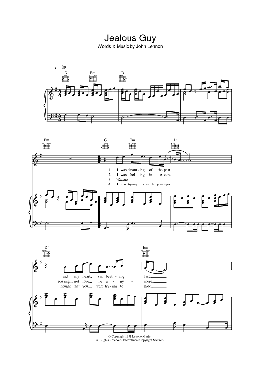 Digital Sheet Music for Jealous Guy by John Lennon, Roxy Music scored for Piano/Vocal/Chords; id:392173