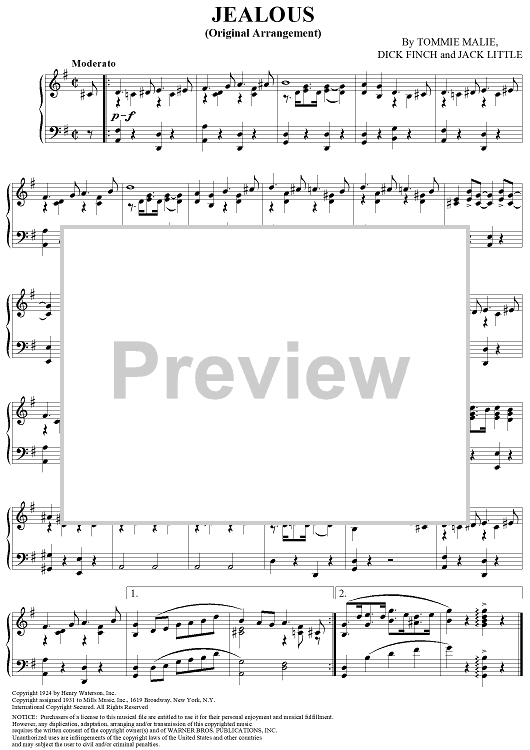 Digital Sheet Music for Jealous (Original Arrangement) by Fats Waller, Tommie Malie, Dick Finch, Jack Little scored for Piano Solo; id:316968