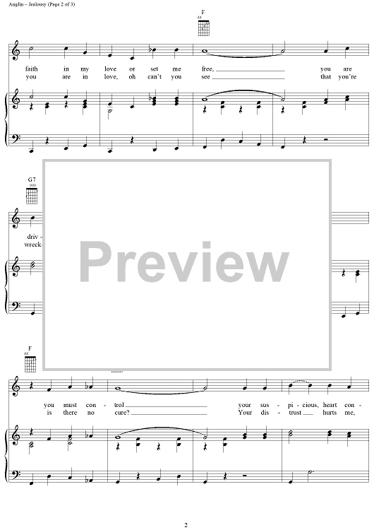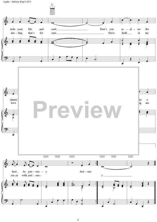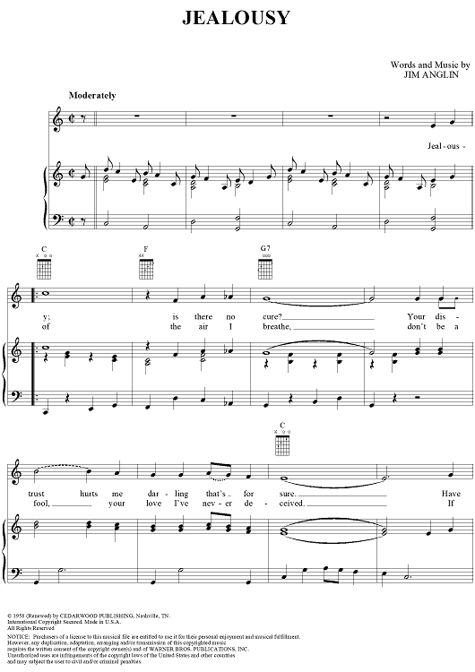 Digital Sheet Music for Jealousy by Jim Anglin, Kitty Wells scored for Piano/Vocal/Chords; id:235414