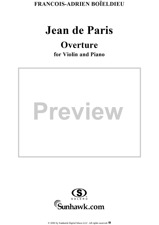 Digital Sheet Music for Jean de Paris - Piano Score by François-Adrien Boieldieu scored for Violin/Piano; id:269885