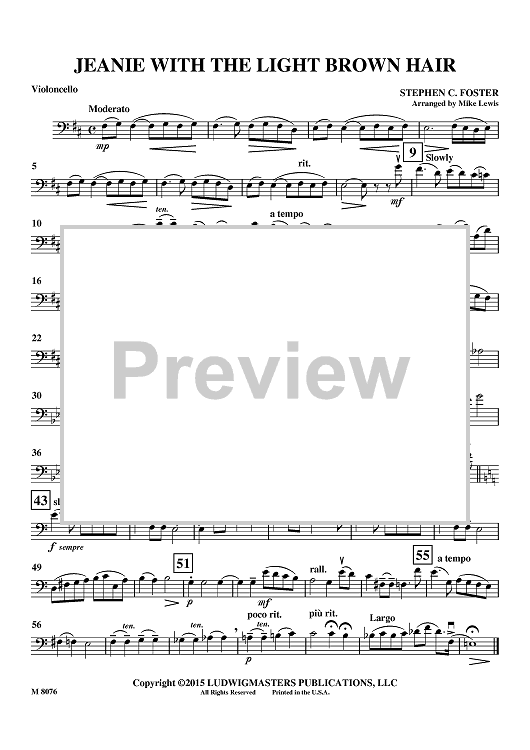 Digital Sheet Music for Jeanie With The Light Brown Hair - Cello by , Mike Lewis, Stephen Foster scored for String Orchestra; id:458283