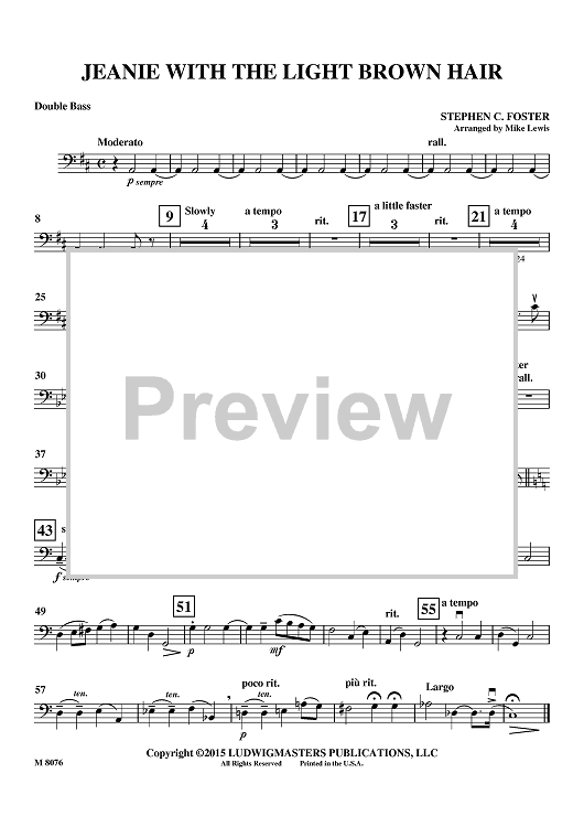 Digital Sheet Music for Jeanie With The Light Brown Hair - Double Bass by , Mike Lewis, Stephen Foster scored for String Orchestra; id:458284