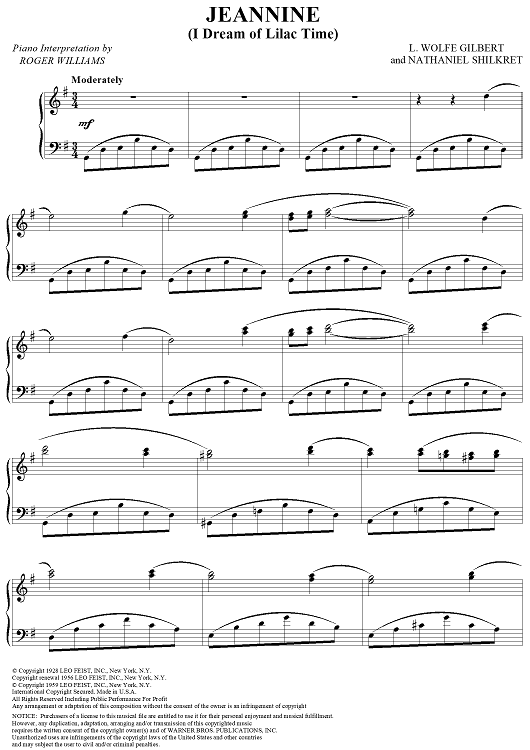 Digital Sheet Music for Jeannine (I Dream of Lilac Time) by Roger Williams, L. Wolfe Gilbert, Nathaniel Shilkret scored for Piano Solo; id:321606