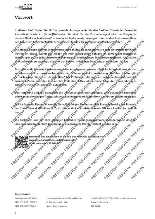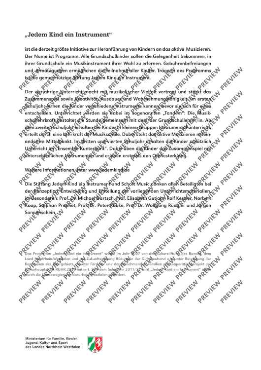 In diesem Heft finden Sie 18 fantasievolle Arrangements für den flexiblen Einsatz im Ensemble Kunterbunt sowie im (Schul-)Orchester. Sie sind für ein Zusammenspiel aller im Programm "Jedem Kind ein Instrument" erlernbaren Instrumente arrangiert und in den Instrumentalbänden bereits im Ensembleteil als Arrangement für den Kleingruppenunterricht enthalten.