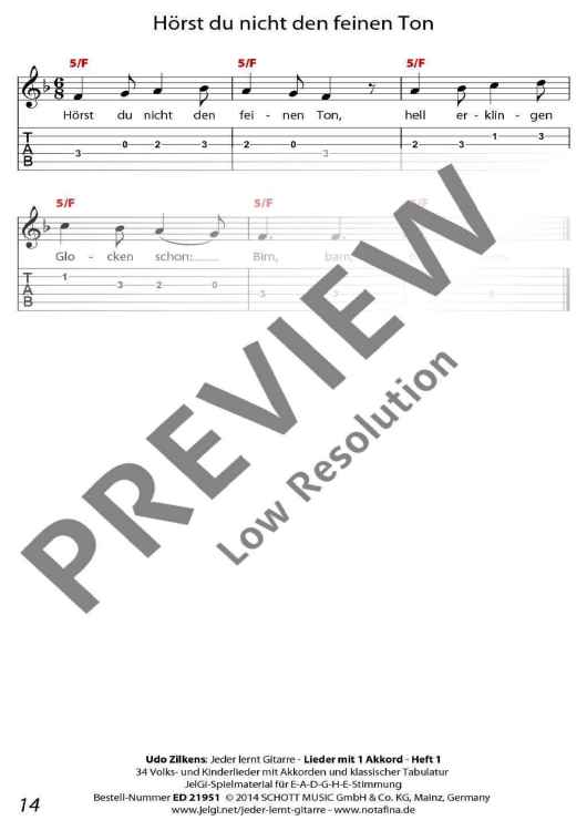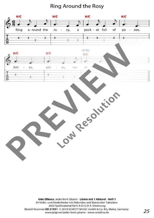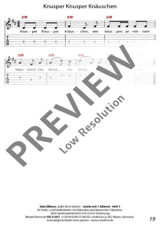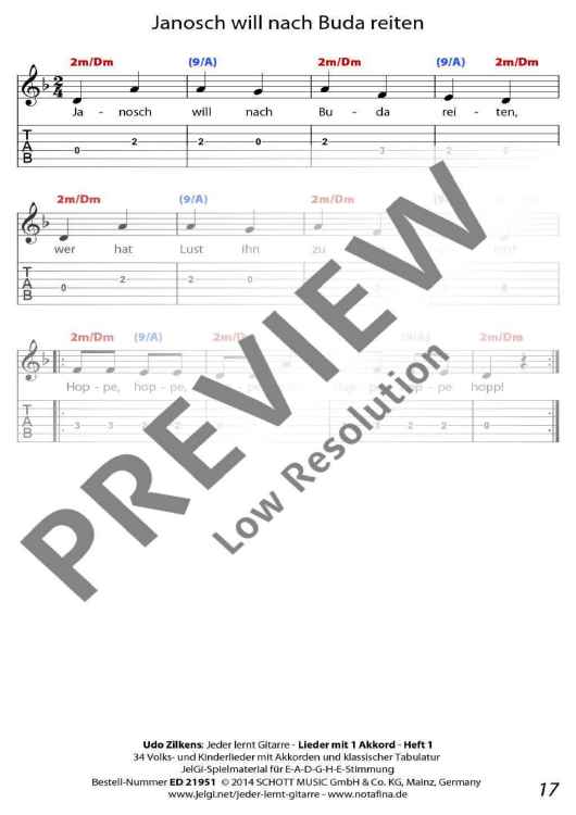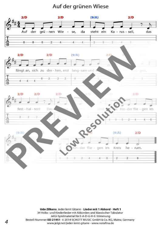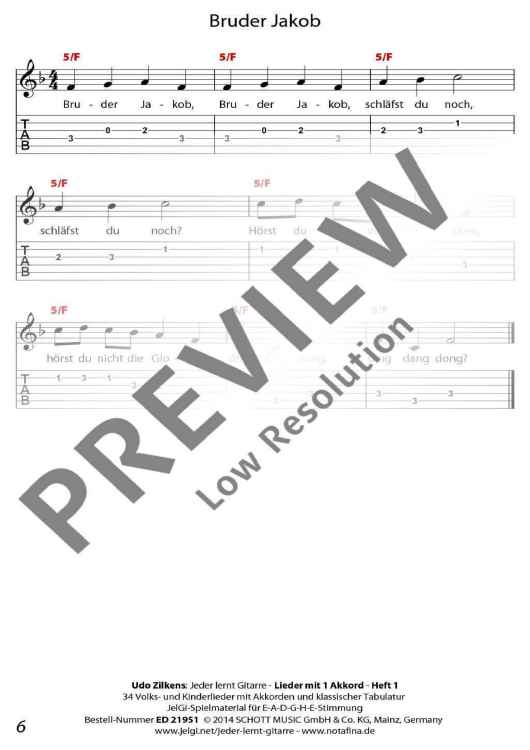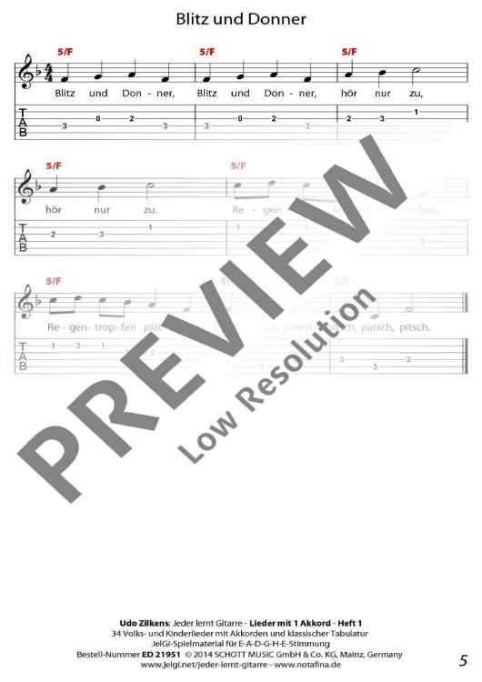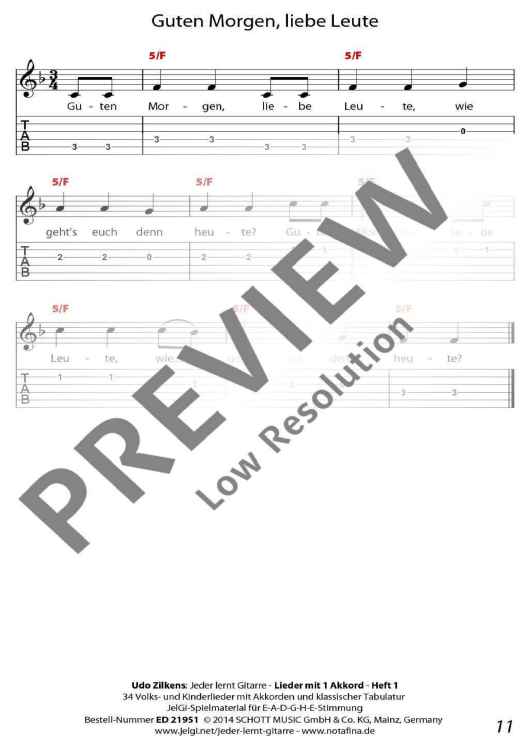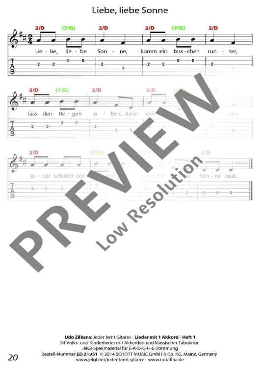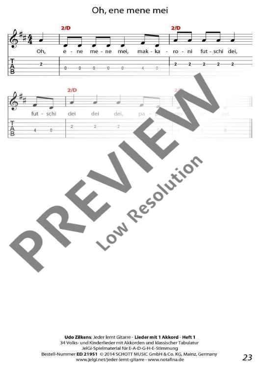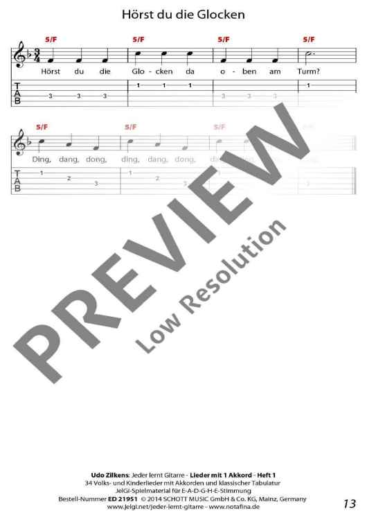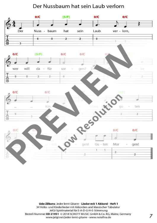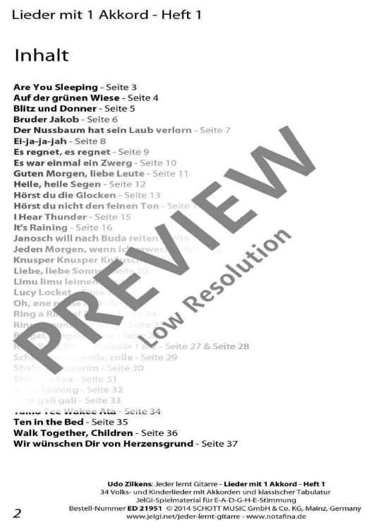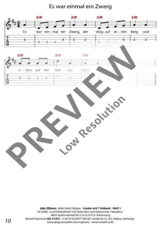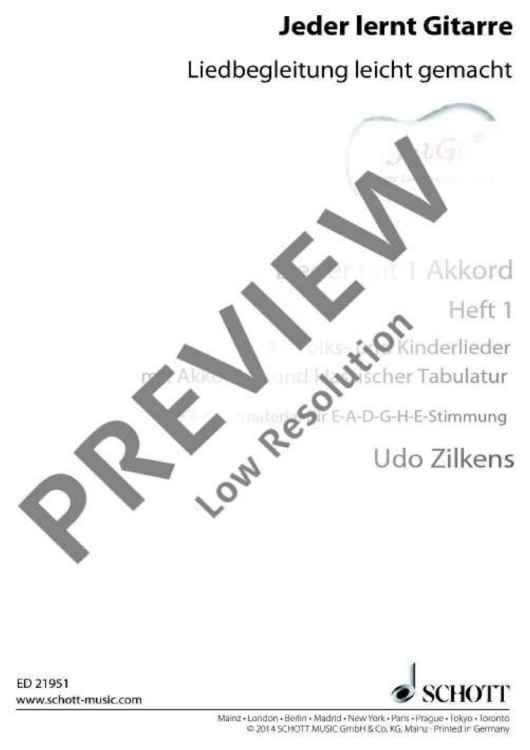 "Jeder lernt Gitarre - Lieder mit 1 Akkord Heft 1" Sheet Music by