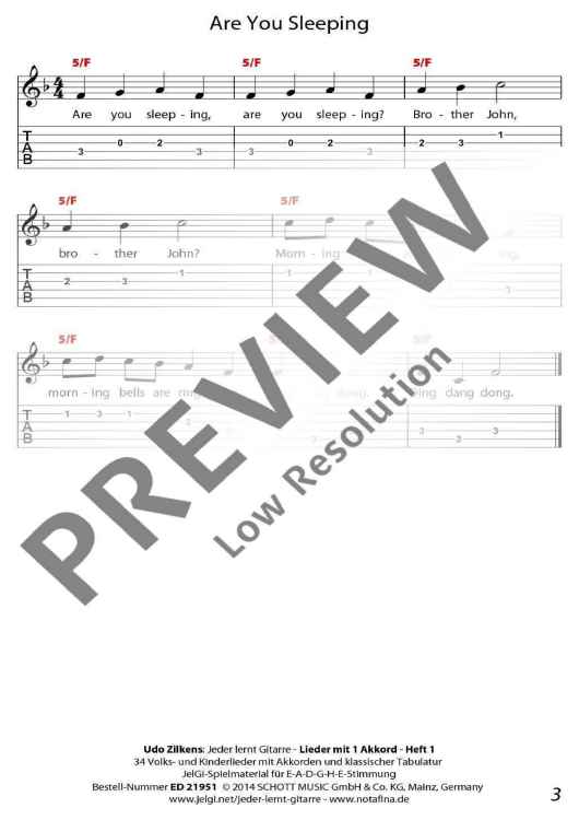Die im In- und Ausland als Marke registrierte Methode "JelGi - Jeder lernt Gitarre" bietet alle Noten wahlweise für traditionelle Stimmung E-A-D-G-H-E oder für vereinfachte JelGi-Stimmung C-G-C-G-C-E an. Die farbigen JelGi-Zahlen entsprechen den Bünden bei der vereinfachten JelGi-Stimmung, die farbigen Akkordbuchstaben geben die traditionellen Gitarrengriffe an. Weitere Informationen zur JelGi-Methode sind unter www.jelgi.com zu finden.
