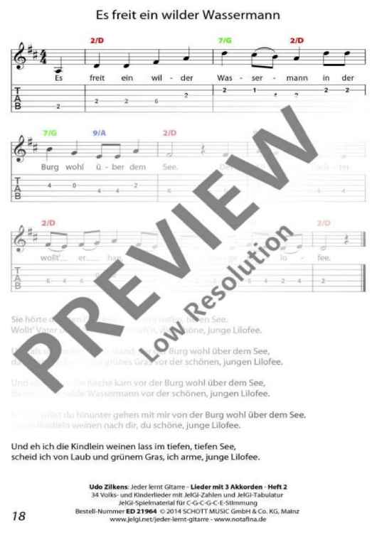 "Jeder lernt Gitarre - Lieder mit 3 Akkorden Heft 2" Sheet Music by