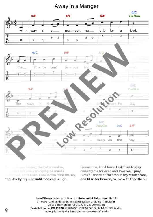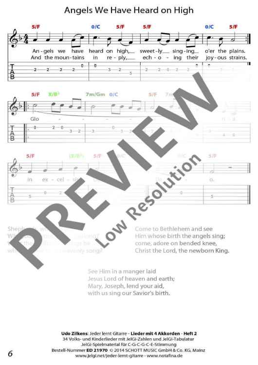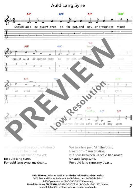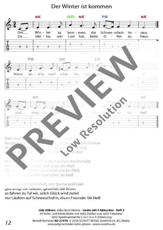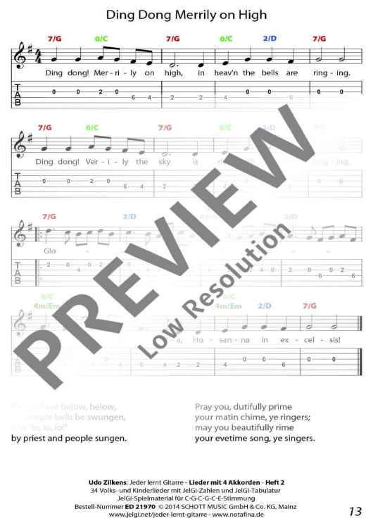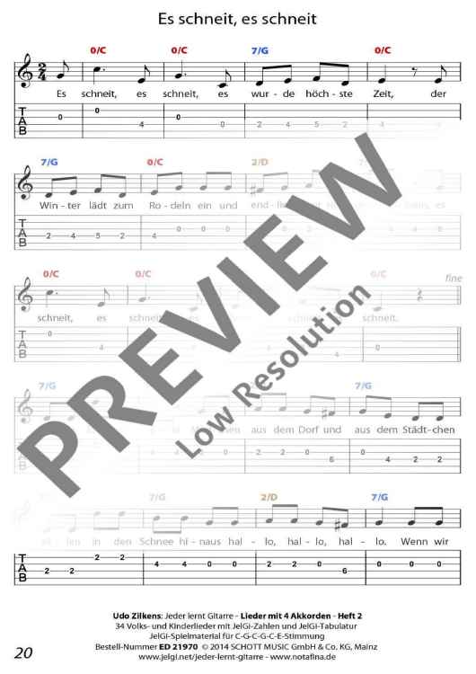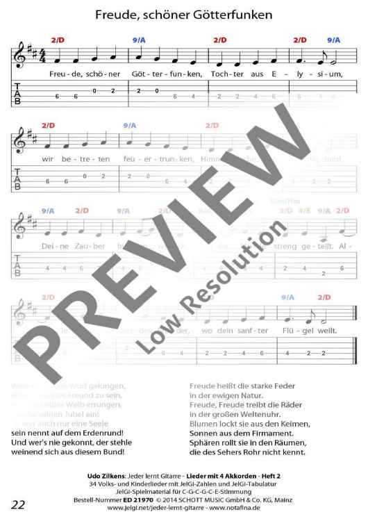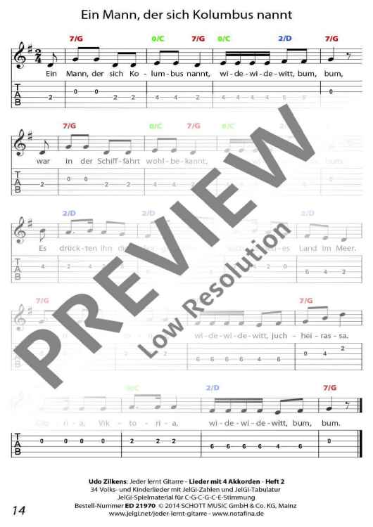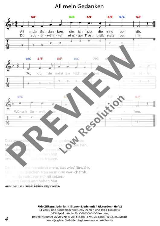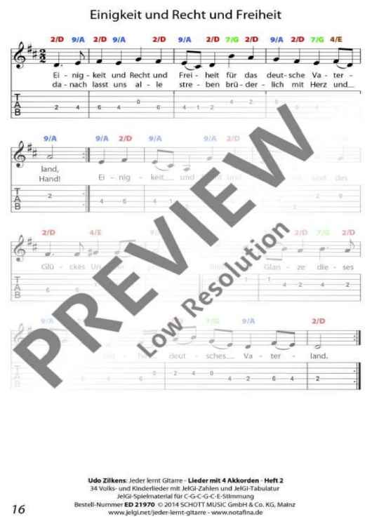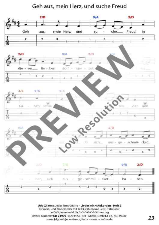 Die im In- und Ausland als Marke registrierte Methode "JelGi - Jeder lernt Gitarre" bietet alle Noten wahlweise für traditionelle Stimmung E-A-D-G-H-E oder für vereinfachte JelGi-Stimmung C-G-C-G-C-E an. Die farbigen JelGi-Zahlen entsprechen den Bünden bei der vereinfachten JelGi-Stimmung, die farbigen Akkordbuchstaben geben die traditionellen Gitarrengriffe an. Weitere Informationen zur JelGi-Methode sind unter www.jelgi.com zu finden.