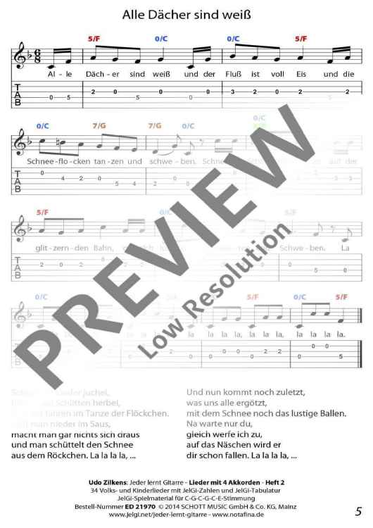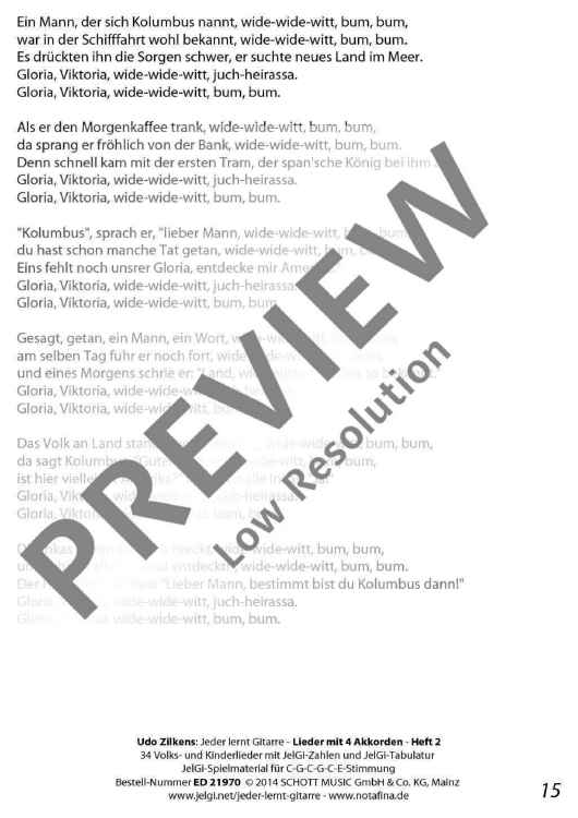 "Jeder lernt Gitarre - Lieder mit 4 Akkorden Heft 2" Sheet Music by