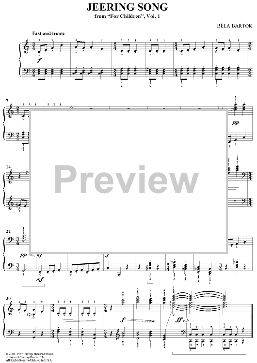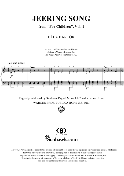 Digital Sheet Music for Jeering Song by , Bela Bartok scored for Piano Solo; id:287676
