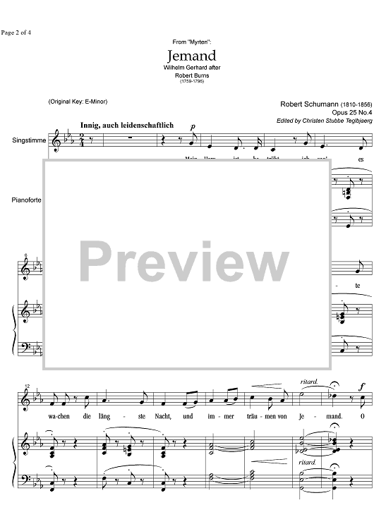 "Jemand Op.25 No. 4" Sheet Music by Robert Schumann