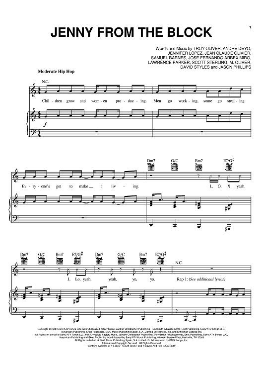 Digital Sheet Music for Jenny From The Block by Jennifer Lopez, Troy Oliver, Andre Deyo, Jadakiss, Styles scored for Piano/Vocal/Chords; id:370222