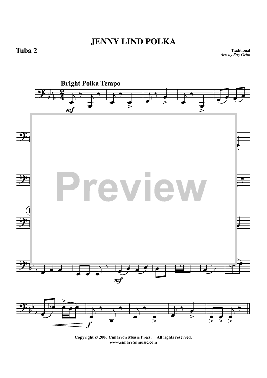 "Jenny Lind Polka - Tuba 2" Sheet Music by Traditional