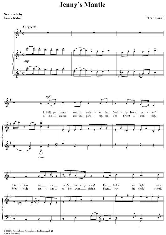 Digital Sheet Music for Jenny's Mantle by Frank Kidson, Traditional scored for Piano/Vocal; id:258646