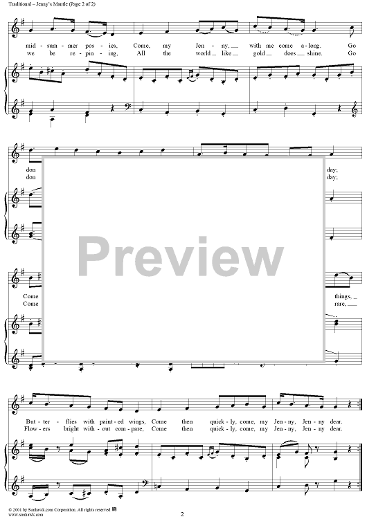 "Jenny's Mantle" Sheet Music by Traditional