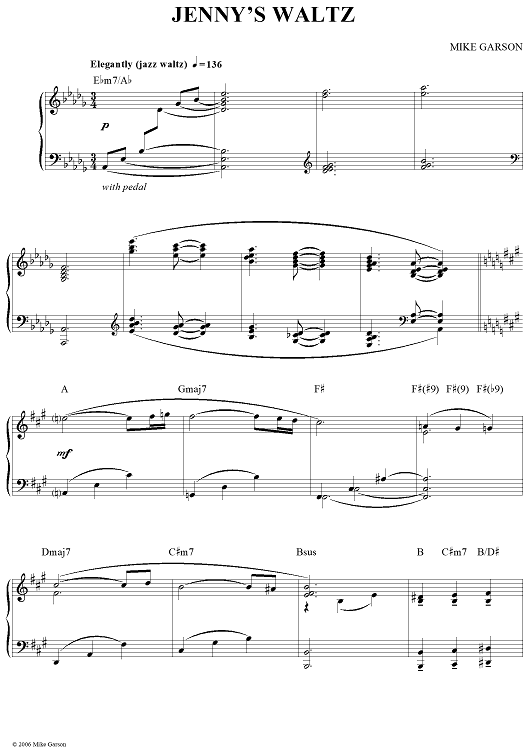"Jenny's Waltz" Sheet Music by Mike Garson