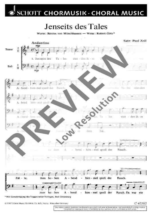 Digital Sheet Music for Jenseits des Tales standen ihre Zelte - Choral Score by Paul Zoll scored for Men's Choir (ttbb); id:471709