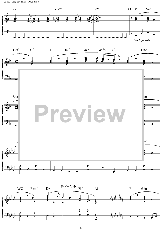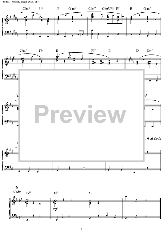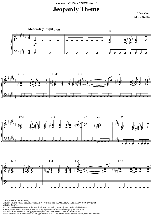 Digital Sheet Music for Jeopardy Theme by Merv Griffin scored for Piano Solo; id:96070