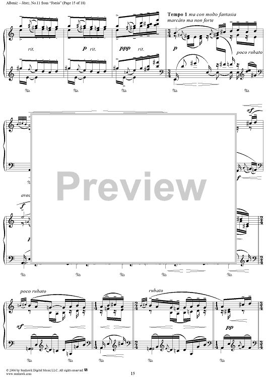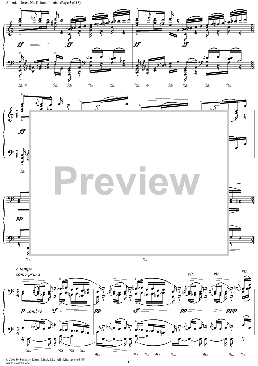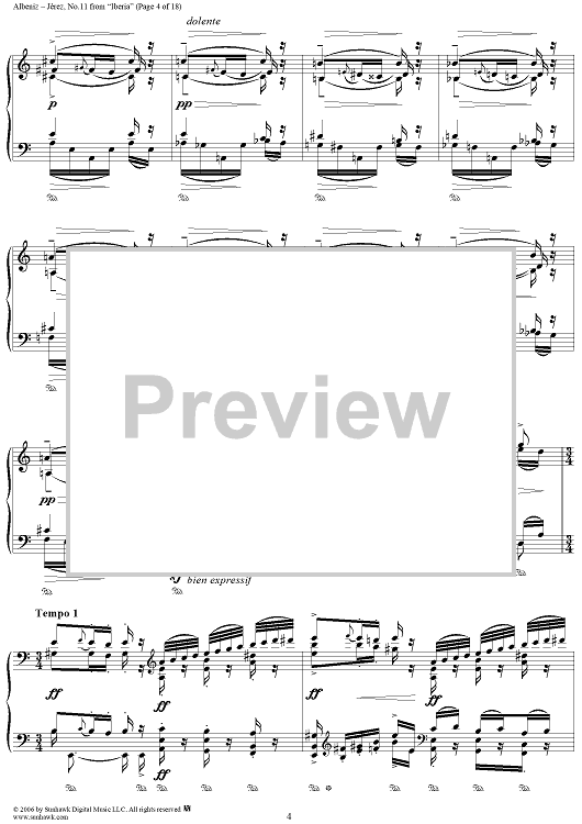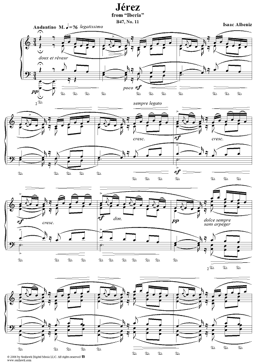 Digital Sheet Music for Jérez by Isaac Albéniz scored for Piano Solo; id:315323