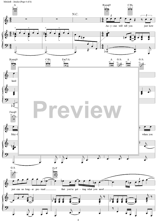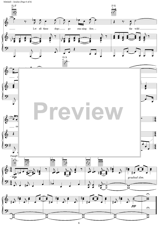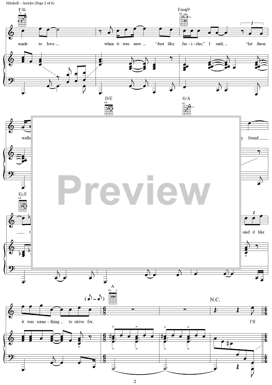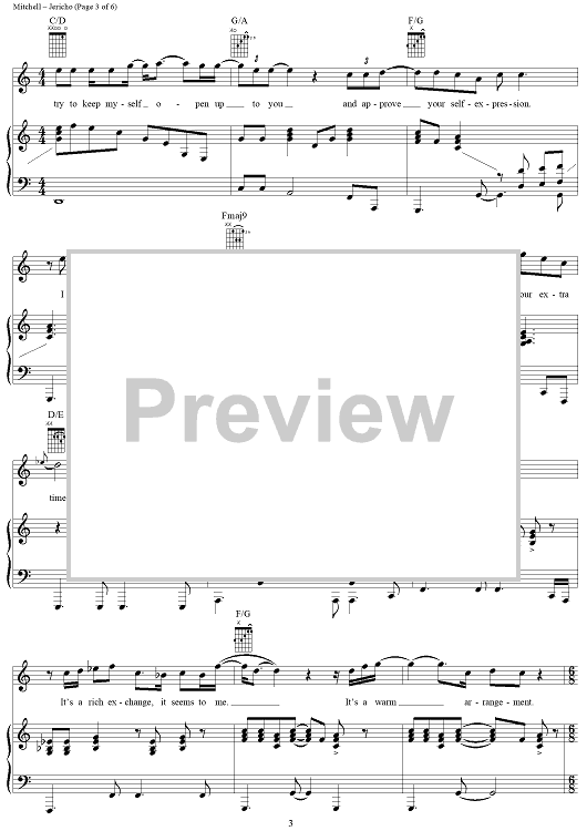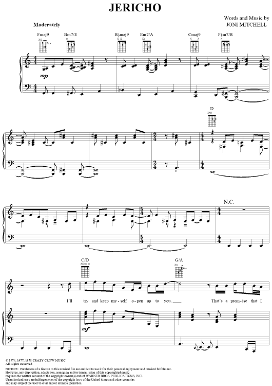 Digital Sheet Music for Jericho by Joni Mitchell scored for Piano/Vocal/Chords; id:240725