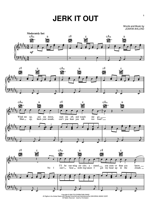 Digital Sheet Music for Jerk It Out by Joakim Ahlund, Caesars scored for Piano/Vocal/Chords; id:383305