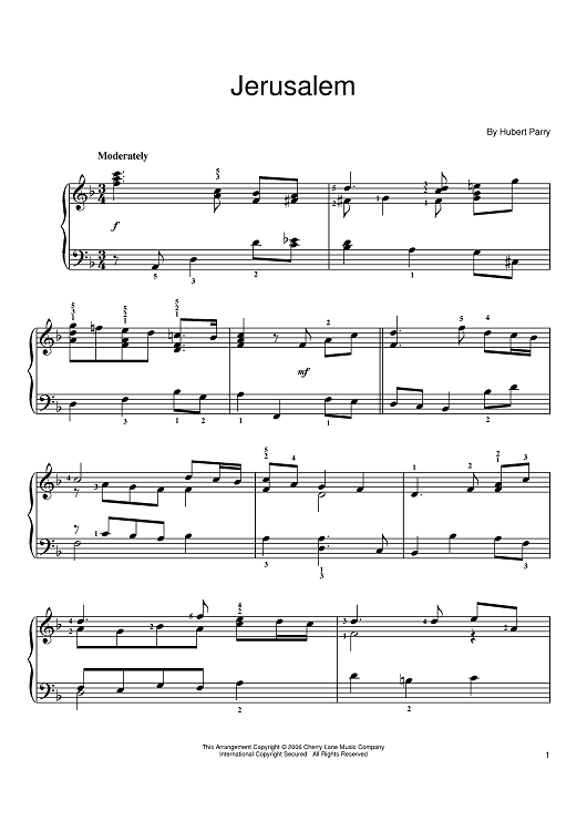 Digital Sheet Music for Jerusalem by Hubert Parry scored for Easy Piano; id:388668