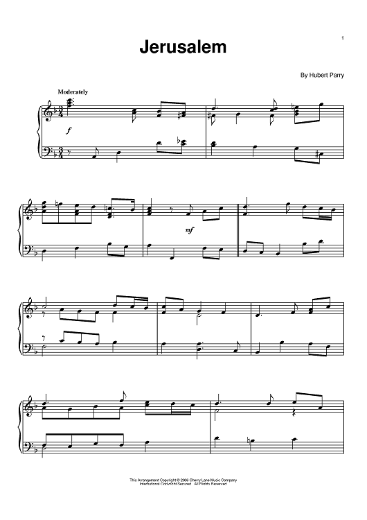 Digital Sheet Music for Jerusalem by Hubert Parry scored for Piano; id:389504