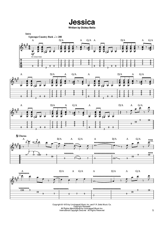 Digital Sheet Music for Jessica by Dickey Betts, The Allman Brothers Band scored for Guitar Tab; id:389045