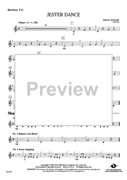 Digital Sheet Music for Jester Dance - Baritone TC by Mekel Rogers scored for Concert Band; id:439135