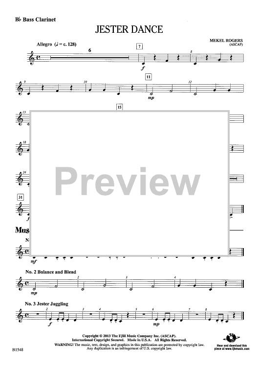 Digital Sheet Music for Jester Dance - Bb Bass Clarinet by Mekel Rogers scored for Concert Band; id:439127