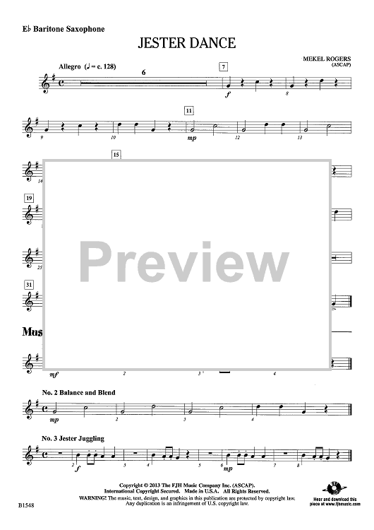 Digital Sheet Music for Jester Dance - Eb Baritone Sax by Mekel Rogers scored for Concert Band; id:439130