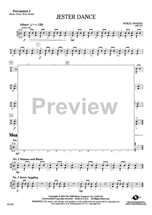 Digital Sheet Music for Jester Dance - Percussion 1 by Mekel Rogers scored for Concert Band; id:439138