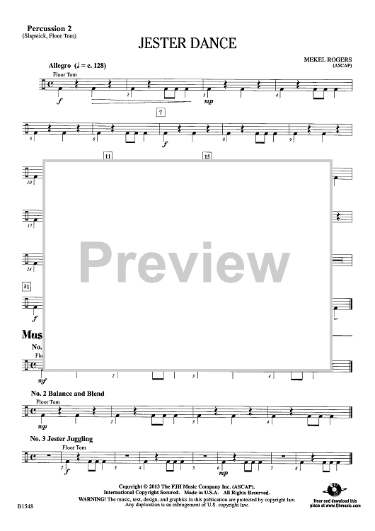 Digital Sheet Music for Jester Dance - Percussion 2 by Mekel Rogers scored for Concert Band; id:439139