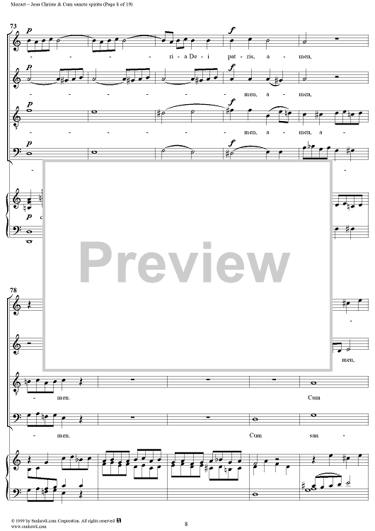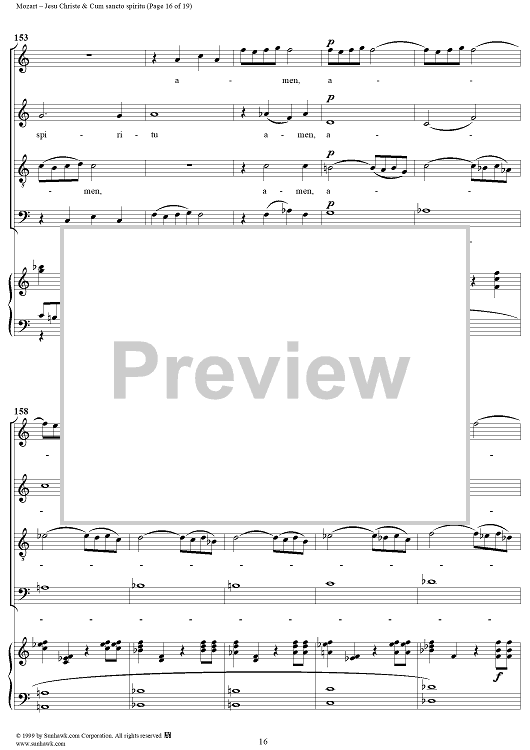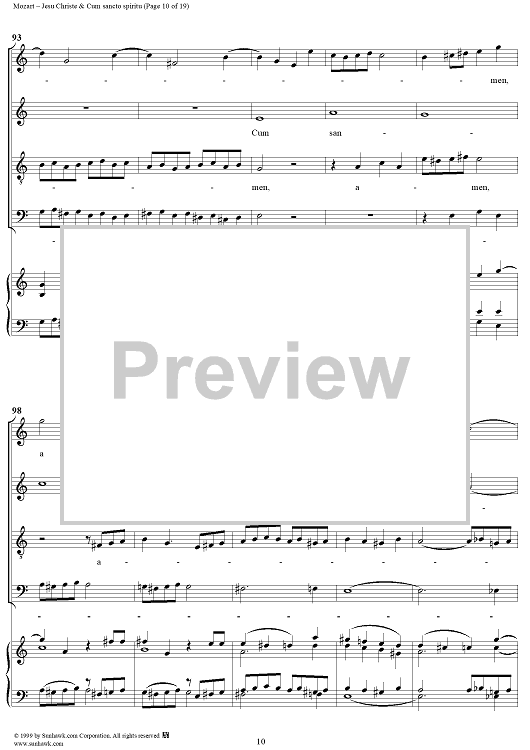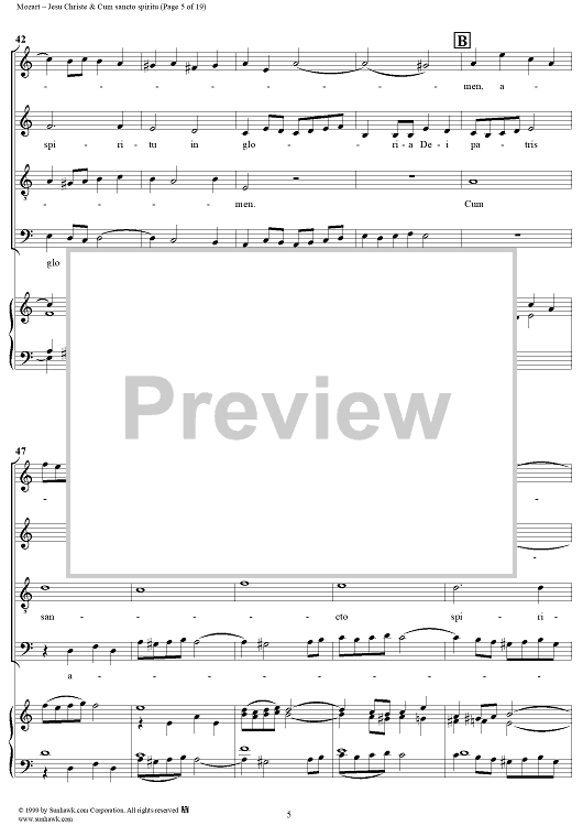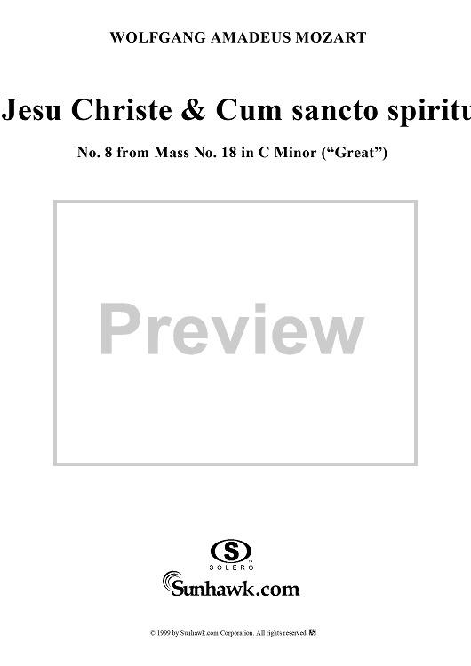 Digital Sheet Music for Jesu Christe & Cum sancto spiritu - No. 8 from Mass no. 18 in C minor ("Great") - K427 (K417a) by Wolfgang Amadeus Mozart scored for Vocal Score; id:253087