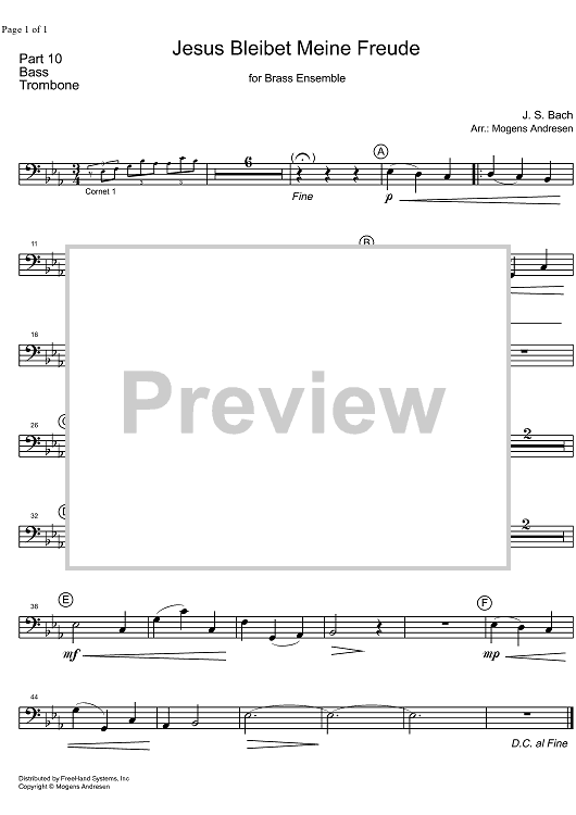 Digital Sheet Music for Jesu, Joy of Man's Desiring BWV 147 - Bass Trombone by Mogens Andresen, Johann Sebastian Bach scored for Brass Ensemble; id:326879