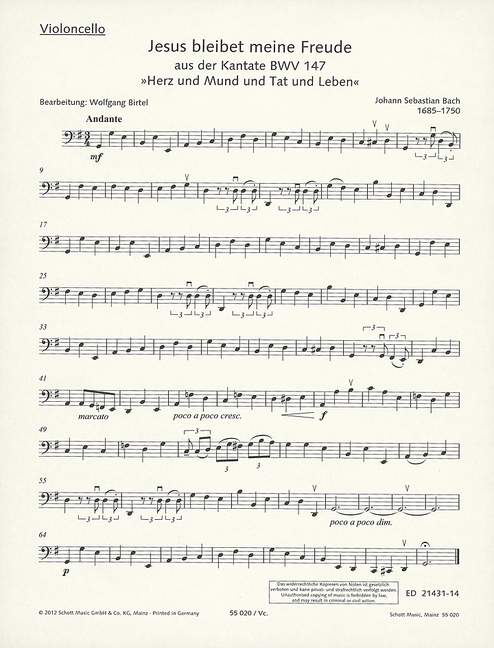 "Jesu, Joy of Man's Desiring - Cello" Sheet Music by Johann Sebastian Bach